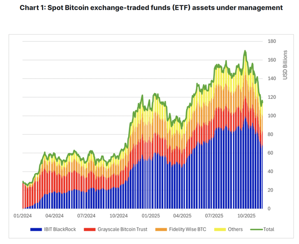 For crypto, 2025 was a consolidation year, with Bitcoin's full-year return of around -5% following the significant gains of 2023 and 2024. Despite this relatively flat performance, institutional adoption quietly accelerated, with around 55% of global hedge funds holding some form of crypto exposure, even if most still keep allocations below 2% of AUM.