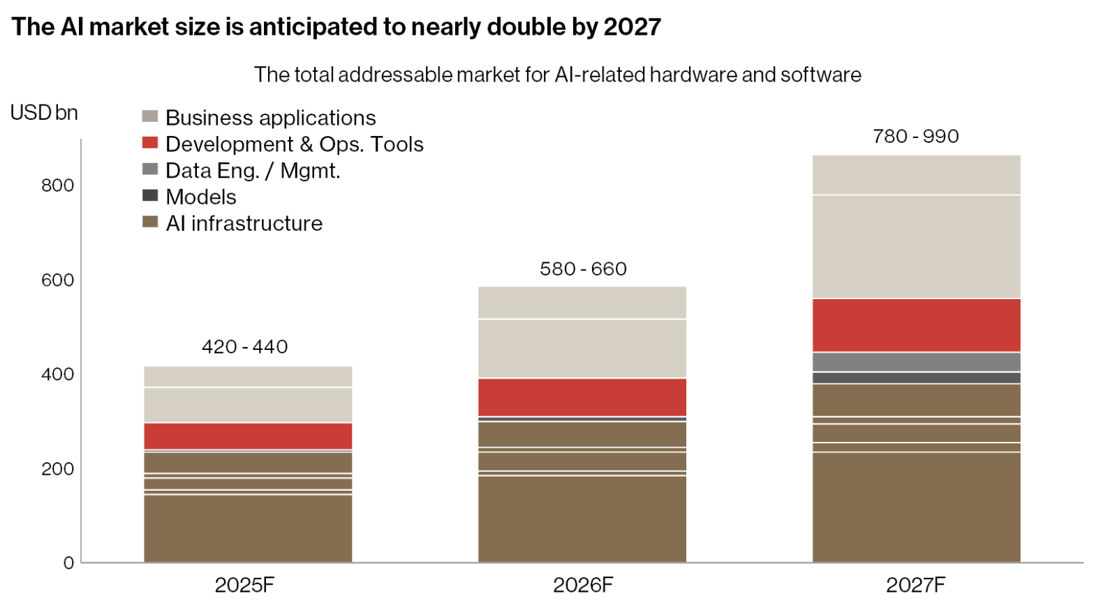 This backdrop has sparked ongoing discussion of an AI bubble, in which the market may be moving much faster than the underlying technology and financial performance of firms in the sector. Parallels have been drawn to the dot-com crash, with events such as Oracle's 15% one-day drop following the release of disappointing AI-related results, fueling fears about overvalued shares. While sentiment is mixed on the merits of current AI valuations, what is less contested is that AI will fundamentally reshape how we live and work, even if the economic payoff remains uncertain.